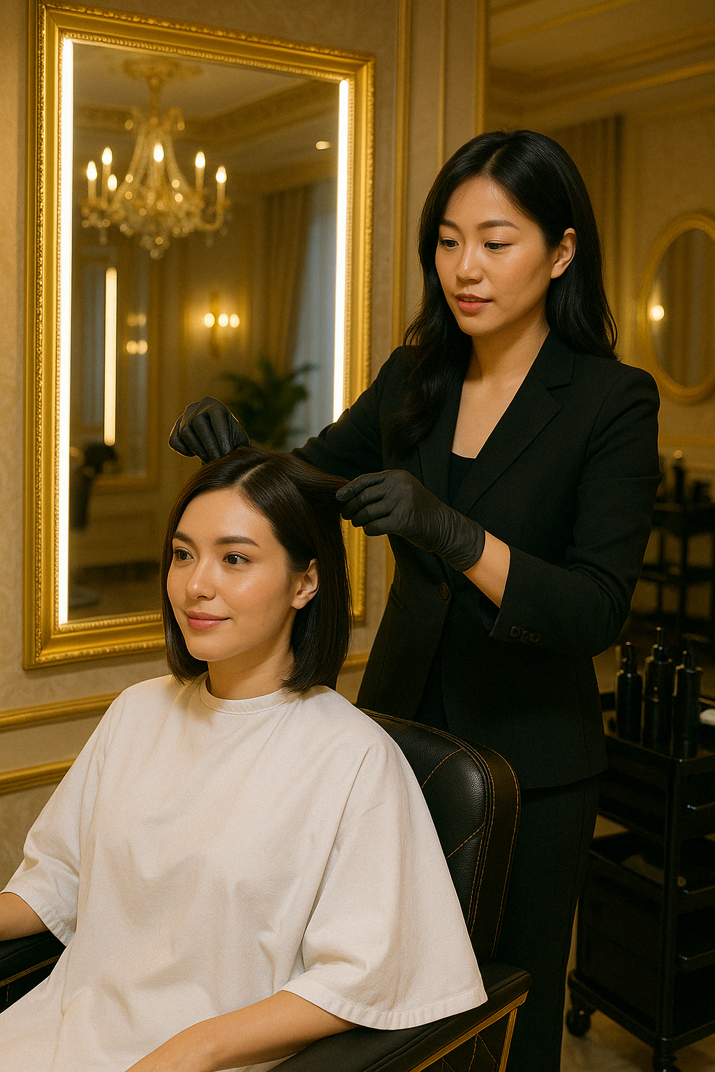 두피를 문지르기보다 지압하듯 부드럽게 마사지했어요.