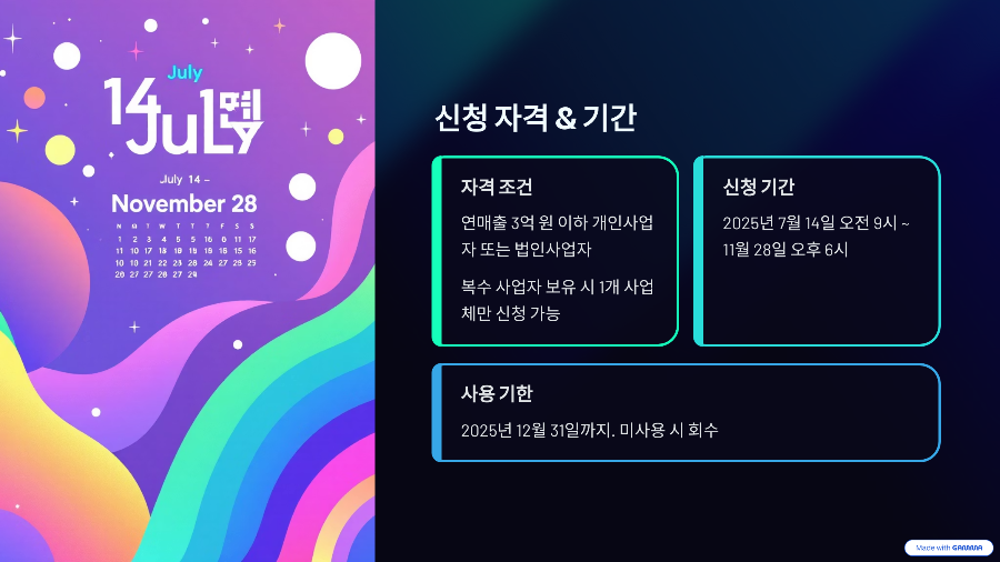 - 신청 기간: 2025년 7월 14일 오전 9시 ~ 11월 28일 오후 6시